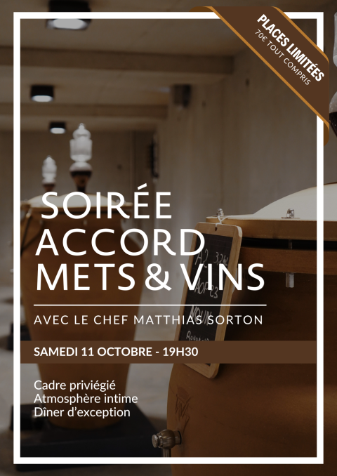 Nous avons imaginé avec le chef Matthias SORTON un dîner en 5 sets, chaque met présenté sera accompagné d'une de nos cuvées afin de sublimer toutes ces saveurs.